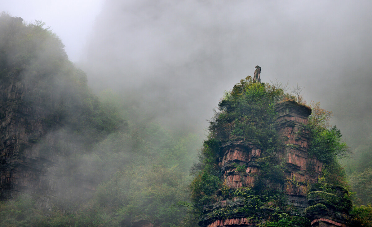 In the river cover 45 turn cross bent mid, red sand stone pieces more than 20-30 meters high, looks like an old woman carrying a barrel. The old lady is a pipe fairy, called Zhu (pig)'s mother, her hand is okegawa barrel pigs cover every family in the river. Sichuan river covered the people often to the stone beneath the maple trees at the worship of Zhu's mother-in-law, for pig fat and strong, to cultivate peace.